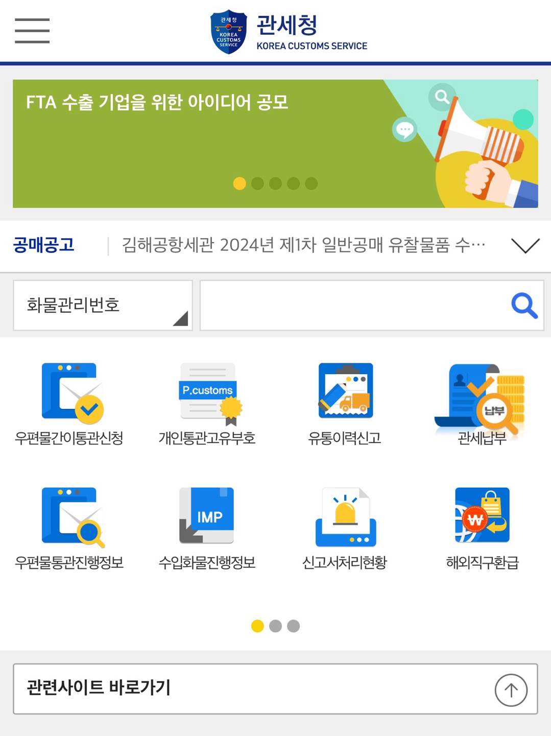 외국에서 한국으로 들어오는  수입물품 통관이라는 과정을 거치게 됩니다.
