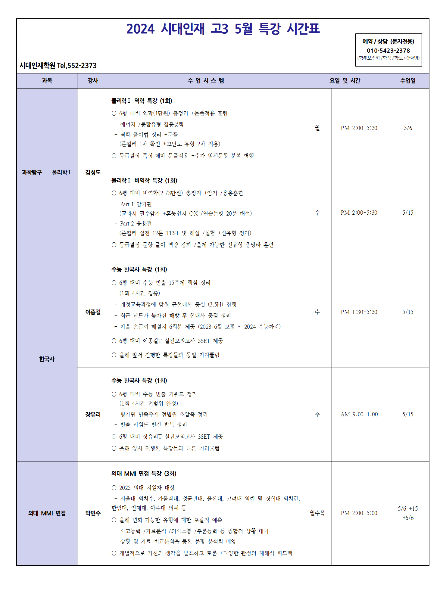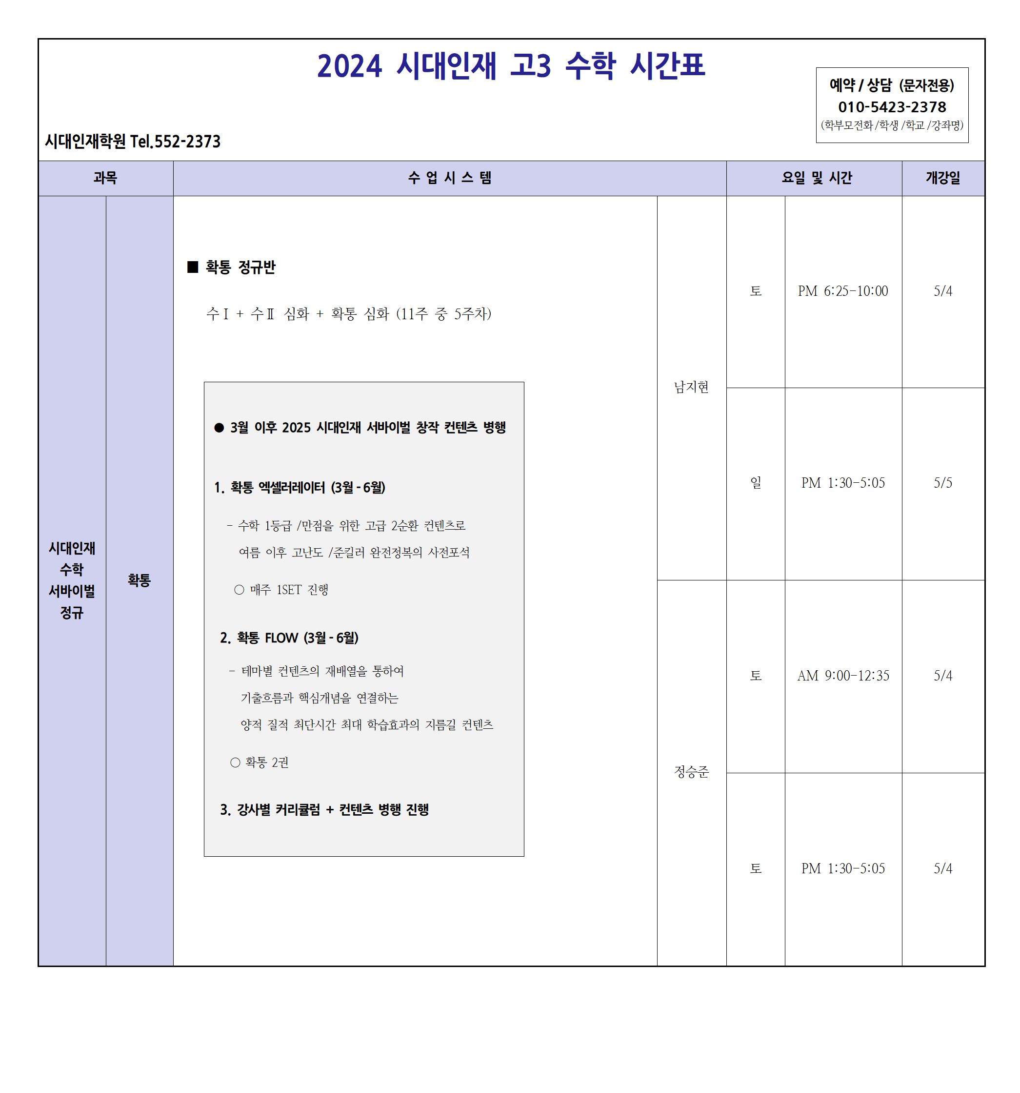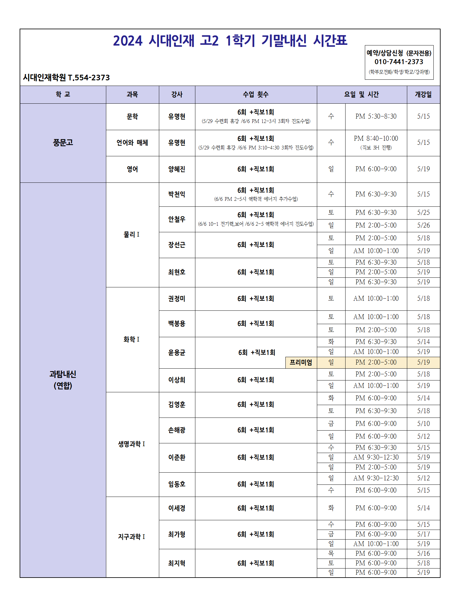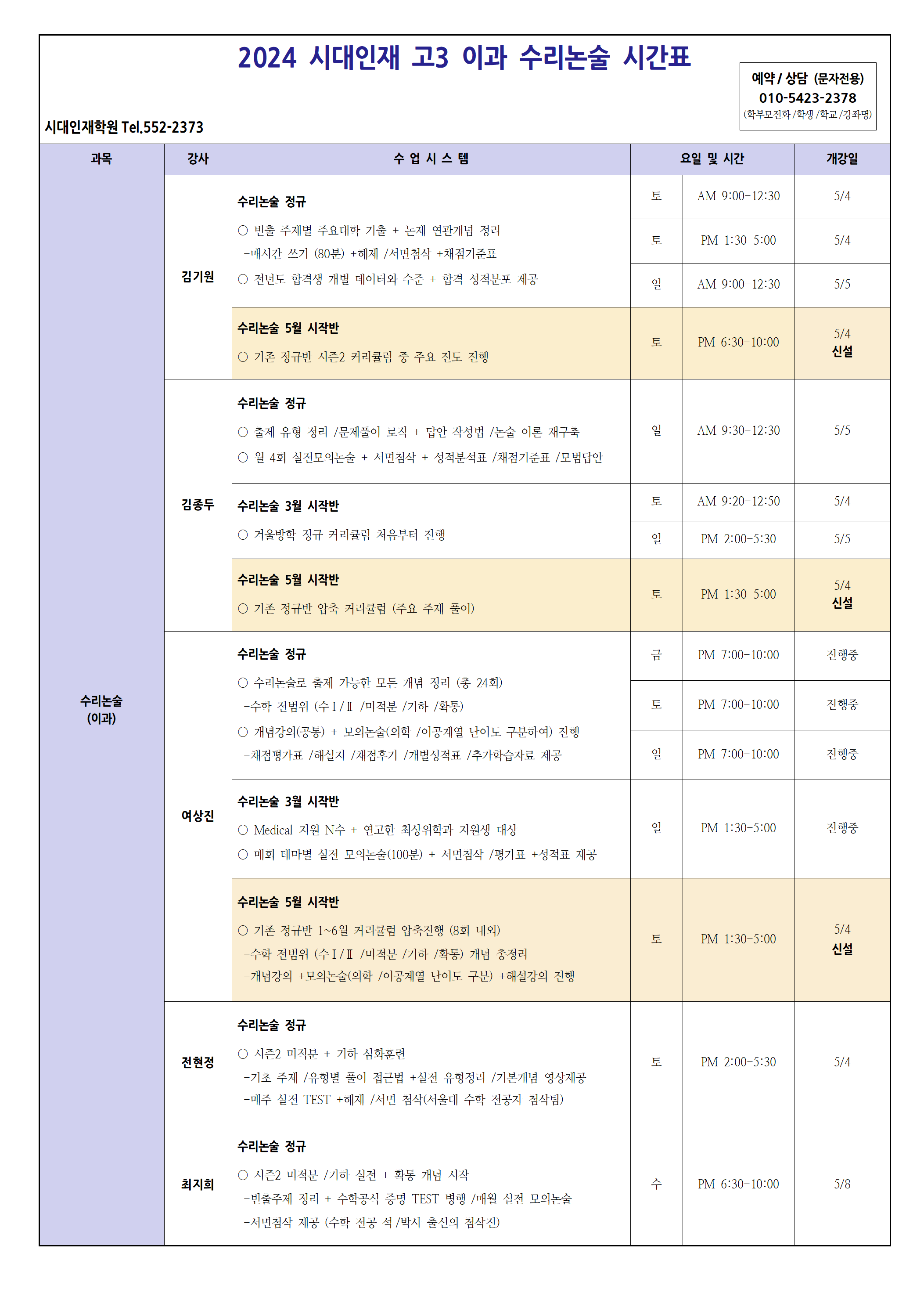 참고로 시간표는 시대 인제에서 한꺼 번에 파학 하기 위 해 참고로 가지고 왔습니다.관심 없는 분들도 입시생이 있다면 한번 읽어 보시면 좋습니다. 큰아이가 시대 인제 에서 국어 공부를 한지도 벌써 2년전 지금은 대학생이 되어 열심이 놀며? 공부 중이니다.그런데 제 발등에 불이 또 떨어 졌습니다. 둘째가 고등 학교 2학년이 되었기 때문 입니다.시간 정말 금방 가네요 시대 인재에 참 많은 선생님 들이 있습니다. 그런데 그거 아시나요 아이와 맞는 쌤이 따로 있다는거 그래서 저는 한달 정도 시대 인제에 나오시는 선생님 들의 인강을 먼저 듣고 아이와 맞는 선생님을 찾으시길 바랍니다.참고로 제딸 아이는 국어 김 은양 쌤과 아이가 참 잘 맞았습니다. 그러니 성적도 쉅게 오르더라구요 아이들 마다 어려워 하는 과목이 존재 합니다. 아이가 대놓고 쌤 실강을 듣고 싶다 하더군요 .바로 찾아갔으나 자리가 없어 예약만 하고 왔습니다. 수시로 전화를 걸어 확인해서 일주일만에 등록을 할수 있었습니다.